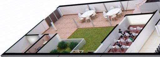 Salones de Usos Múltiples (SUM) confortables y accesibles para todo tipo de discapacidad, Consultorio completamente equipado, espacios verdes al aire libre para Huerta Comunitaria, talleres, amplios comedores, hacen del Centro de Día Sagrada Familia la mejor clínica de atención a personas con discapacidad de la región.